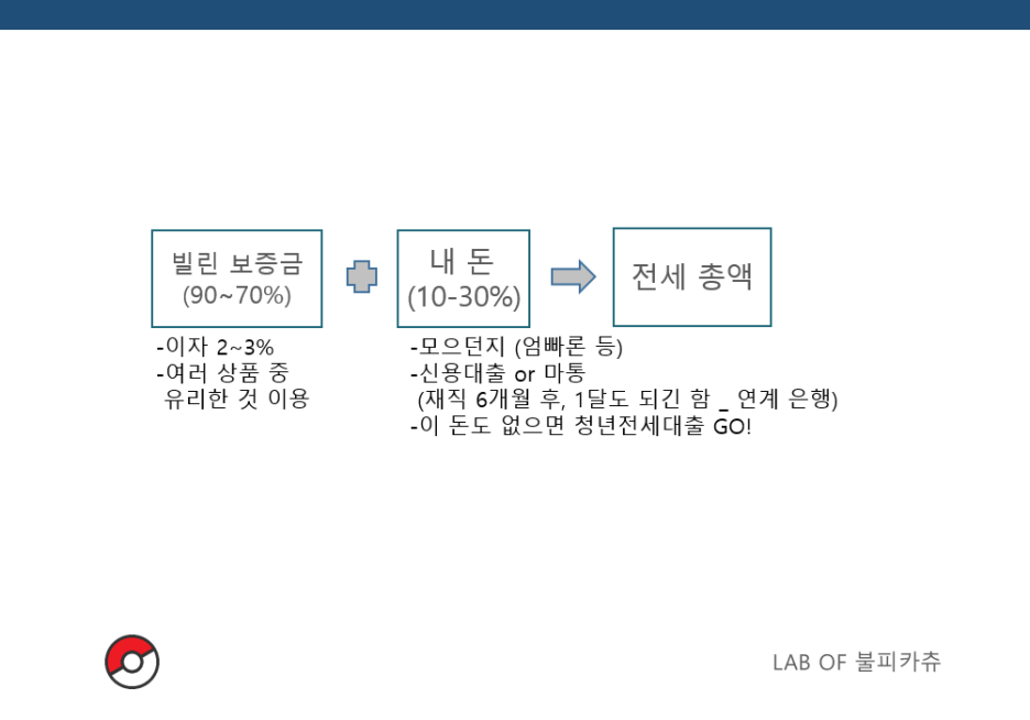 이를 위해서는 어느정도의 보증금이 필요하게 되는데, (전세금 전체가 1억이라면 10~30% 수준의 보증금, 1~3천까진 본인 돈이 있어야함) 아예 사회초년생인 사람들을 위한 제도도 적절하게 마련되어있다. _ 진짜 제도가 겁나 많다.